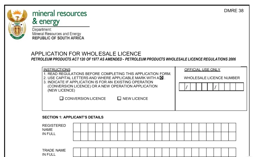 1. Application for Wholesale License DMPR – 50%
